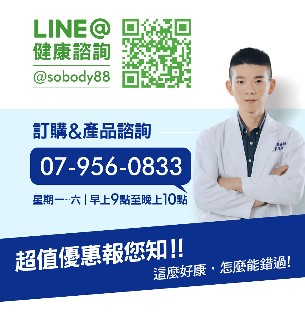 ※根據食品安全衛生法,廣告不得論及療效等字詞、如您想更進一步了解,可撥打產品諮詢電話07-956-0833,將有專業諮詢師與您一對一深入講解。